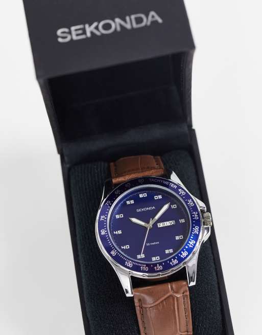 Sekonda Mens Leather Watch With Blue Dial In Brown Asos