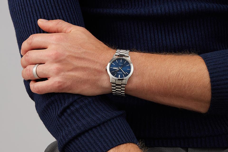 The watch is fastened with. This watch features a gunmetal plated case with a dark blue top ring housing a matching blue sunray dial. Smartwatch designss for men ladies available.